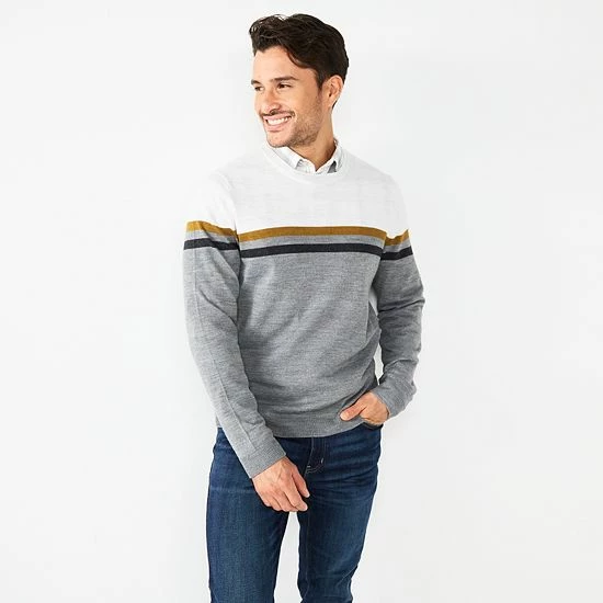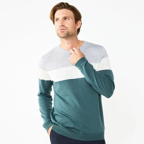 Thanks to it’s classic silhouette and lightweight feel, this men’s Apt. 9 colorblock sweater is wardrobe staple.
